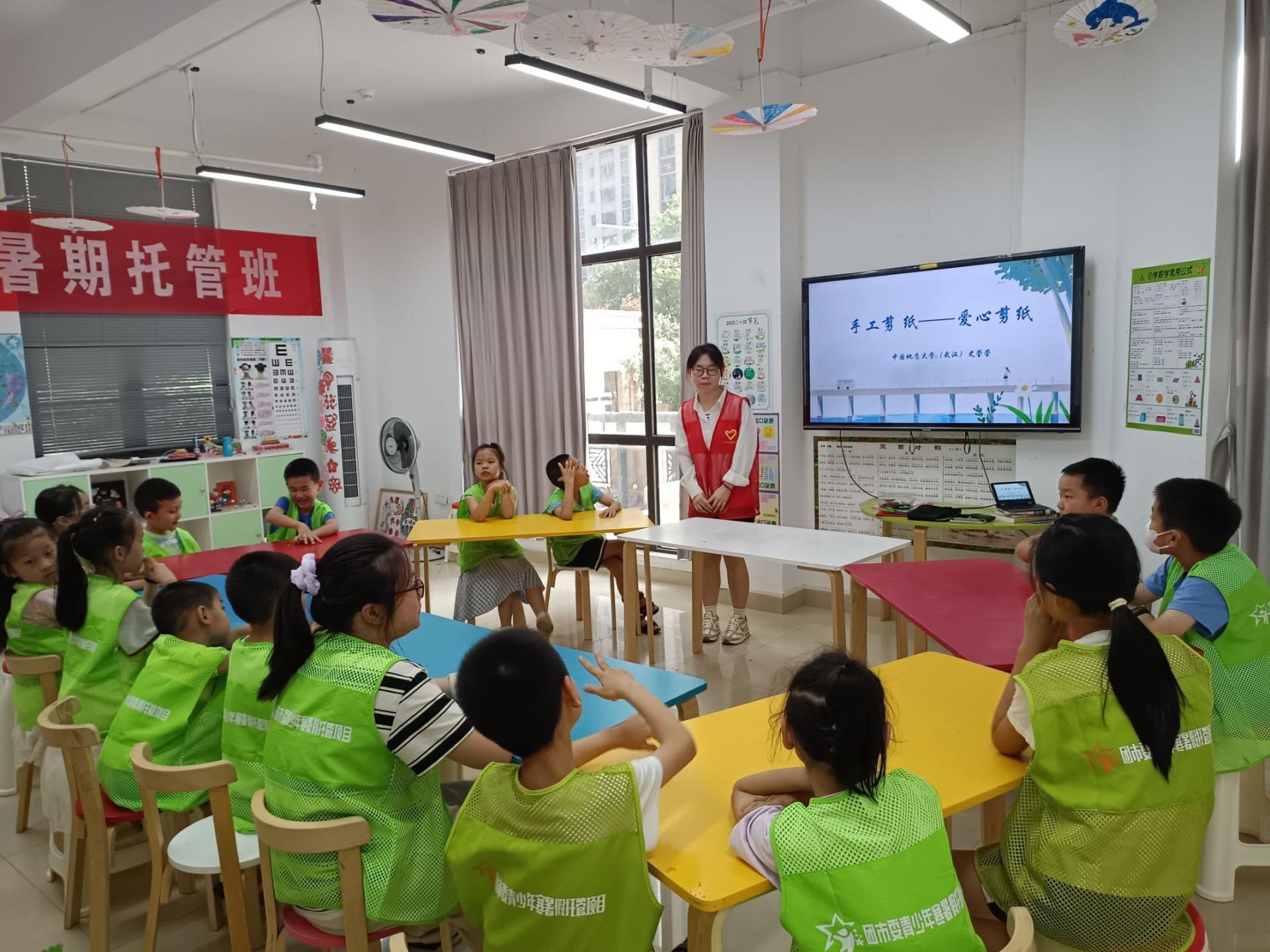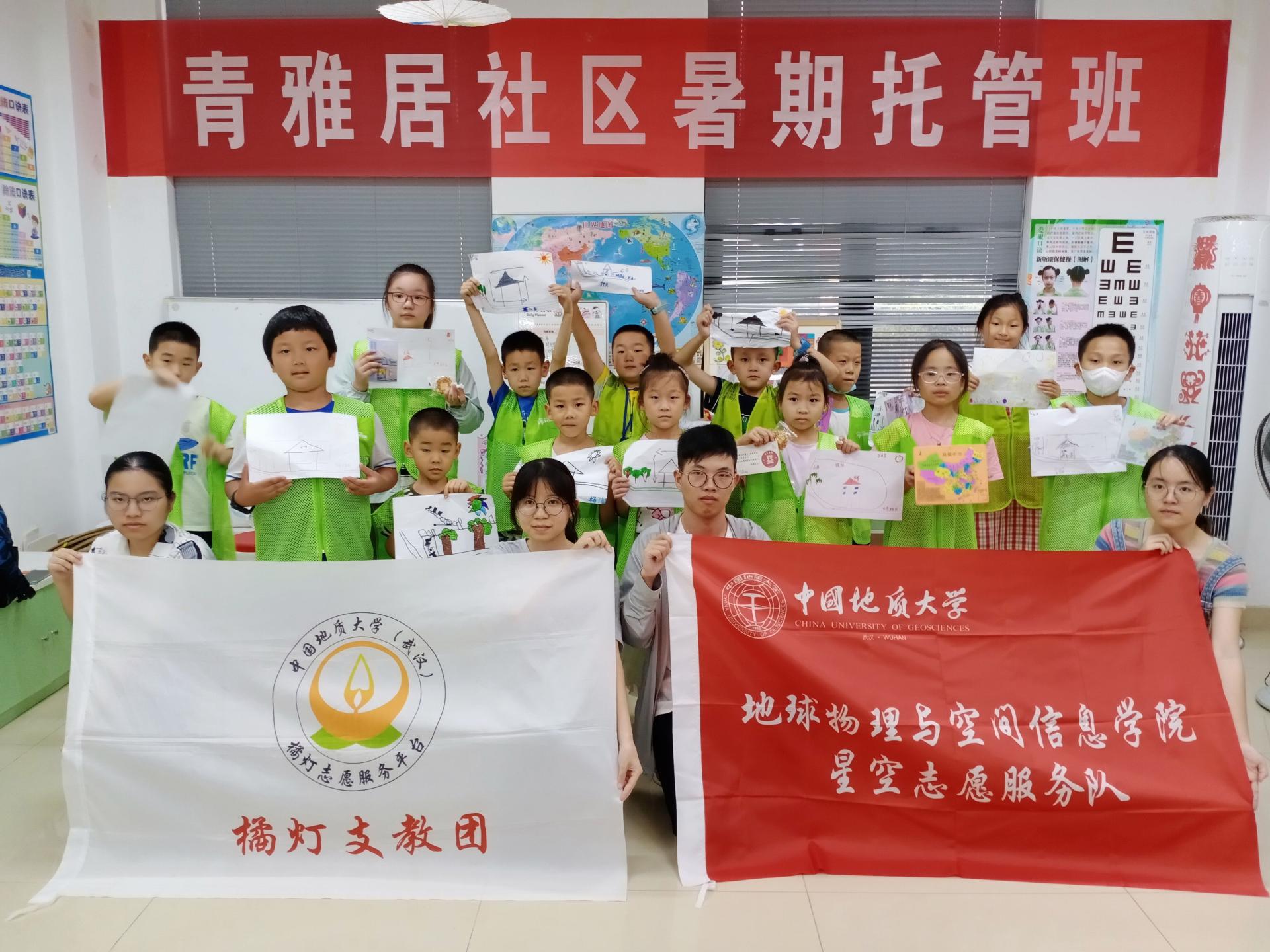 “星空志愿服务队”(橘灯支教团实践团)开展2023年“大学生社区实践计划”之结对社区暑期托管志愿服务项目,通过社会实践活动,为武汉市青山区青雅居社区托管班进行通识类课程授课,共完成授课14课时,服务儿童260余人次。
