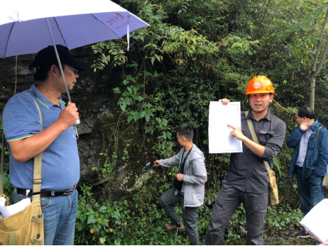 袁晏明给带班教师讲解关于莲沱组与岩体界限点的教学要点(8月22日)