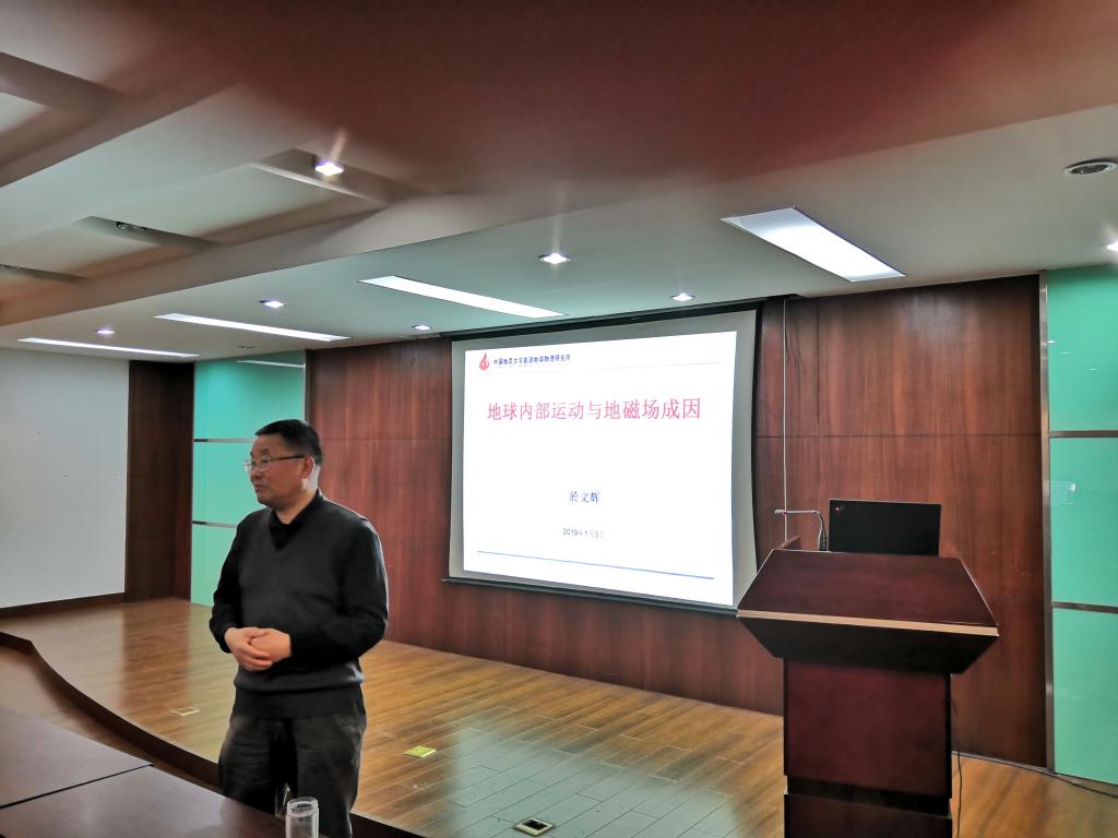 退休老教授於文辉在物探楼222学术报告厅做了《地球内部运动与地磁场成因》的学术报告,全校20多位师生到场聆听讲座。