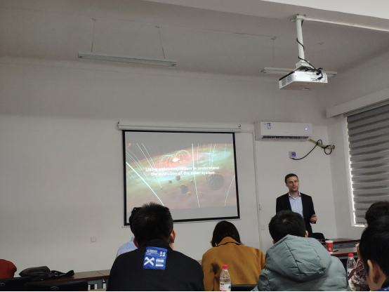 ,并在基委楼113会议室做了“Using paleomagnetism to understand the evolution of the Solar System”的学术报告,全校近30位师生到场聆听讲座。