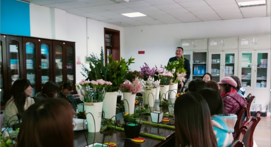 分工会于3月24日在物探楼举办女教师艺术插花活动。学院党委书记马彦周、全体女教师参加了此次活动,活动由工会文艺委员曹雪莲主持。