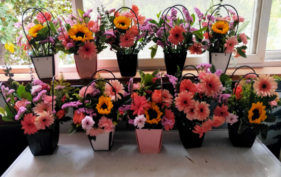 活动邀请了专业花艺培训师进行现场教学,培训师对各类花材的特点和花语寓意、插花的基本方法、花型设计等进行了讲解和现场演示。教师们边看边学边练,满怀喜悦选取喜爱的鲜花,小心翼翼修剪枝叶,奇思妙想搭配设计,大家忙的不亦乐乎。一盆盆灿烂缤纷、各具特色的插花作品,陆续展现。教师们纷纷拍照留念,沉浸在自我创作和互相欣赏之中,脸上的笑容犹如鲜花般绽放。