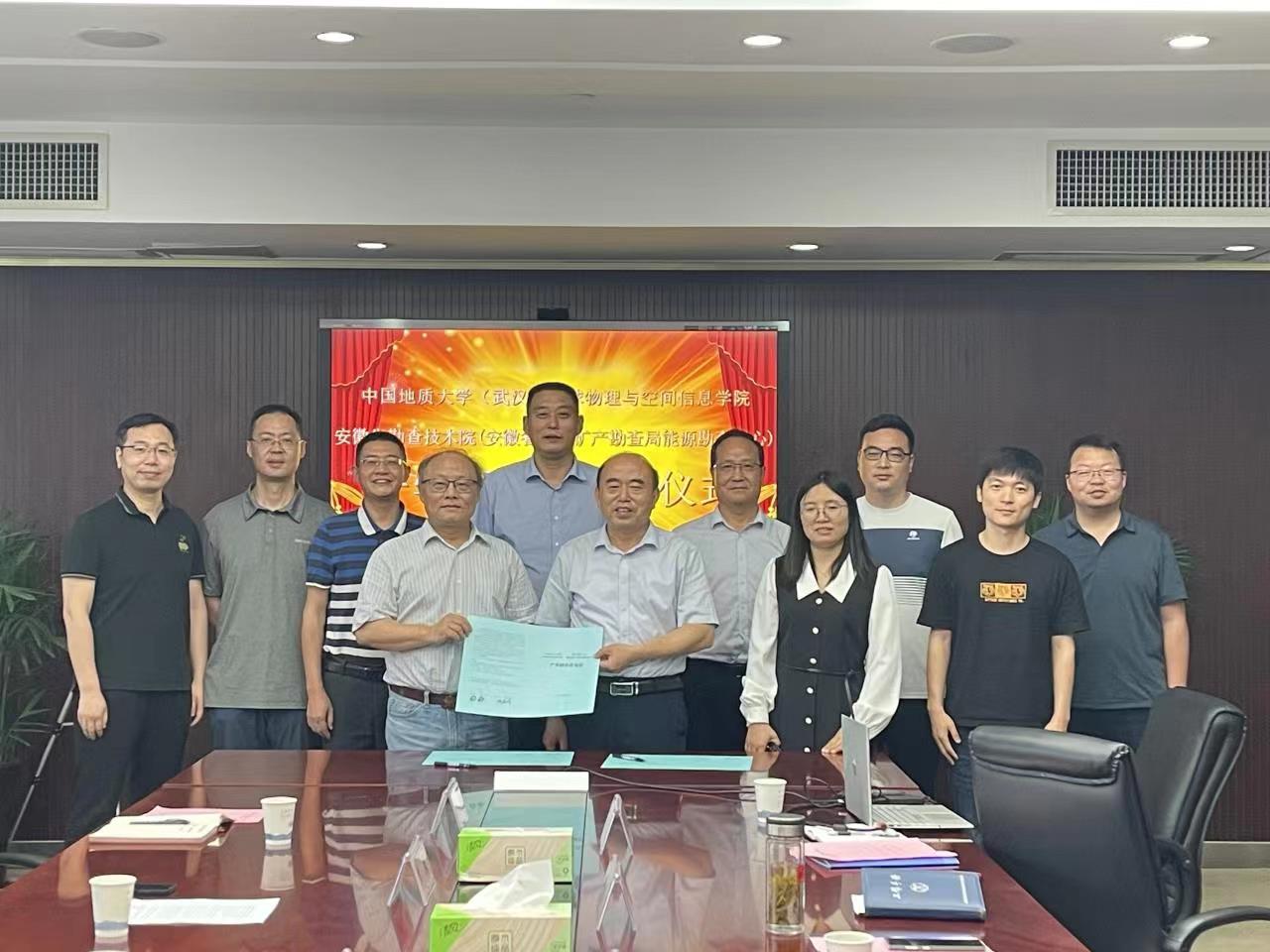 马彦周对安徽省勘查技术院热情接待表示感谢,并简要介绍了学院基本情况。表示双方“同根同源、同心同向”,在产学研合作、科学研究、科技成果转化方面加强合作。