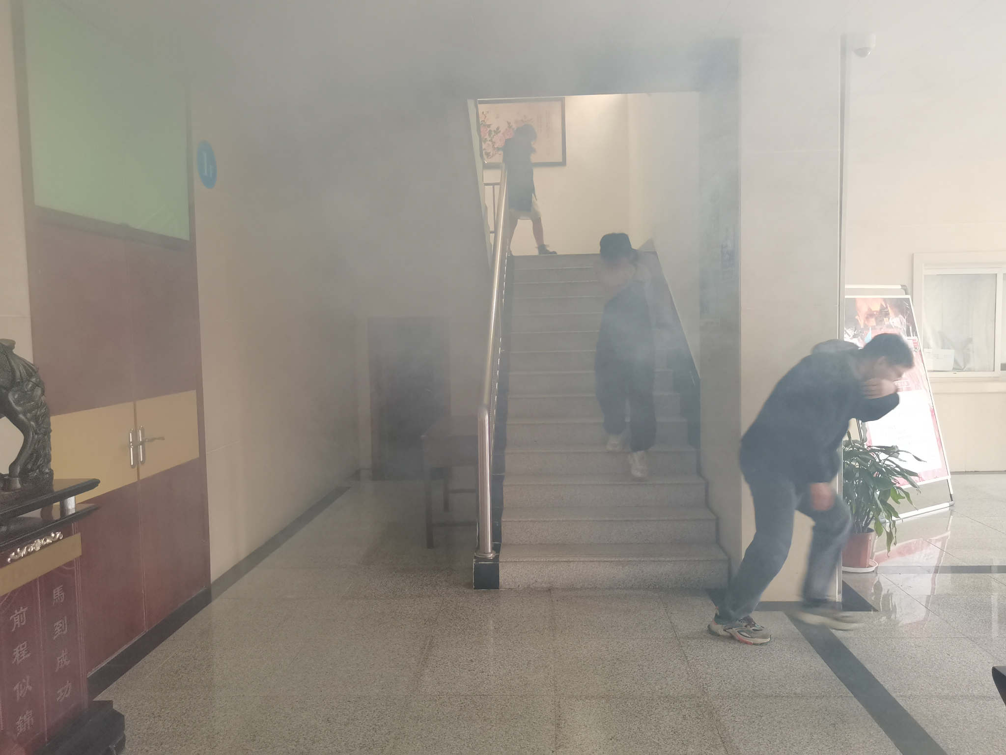 演练前期,学院组织全体师生收看了消防知识公开课,详细了解了火灾的危害性、疏散逃生的基本方法和注意事项。上午九时,随着一阵浓烟升起,警笛声划破了宁静,“楼内失火,人员开始疏散!”各系室和实验中心安全员开始组织人员疏散。师生们俯身低头、紧捂口鼻,快速有序地穿过“失火点”,撤离到指定的安全区域。