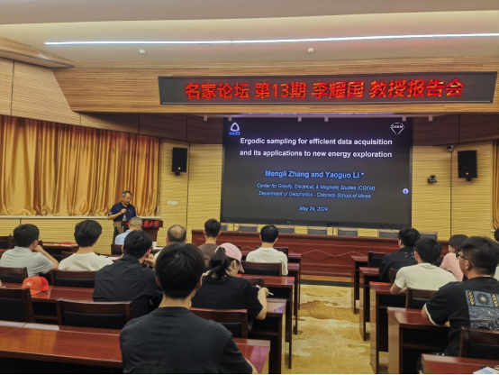 ,在南望山校区东区八角楼学术报告厅,做了题为“Ergodic sampling for efficient data acquisition and its applications to new energy exploration(高效数据采集的遍历态采样及其在新能源勘探中的应用)”的专题学术报告,向到场师生们介绍了一种全新的高效地球物理数据的采样方法,并结合当前新能源勘探领域的前沿讲解了其方法的应用。论坛由胡祥云教授主持。
