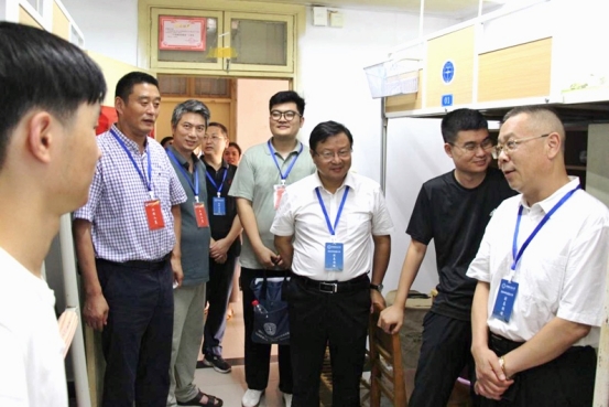 9月2日、9月3日下午,学校党委书记刘杰、纪委书记唐忠阳、党委副书记王甫、校长助理蒋少涌看望学院迎新点新生、工作人员和志愿者,并到学院本科生和研究生新生宿舍进行走访。