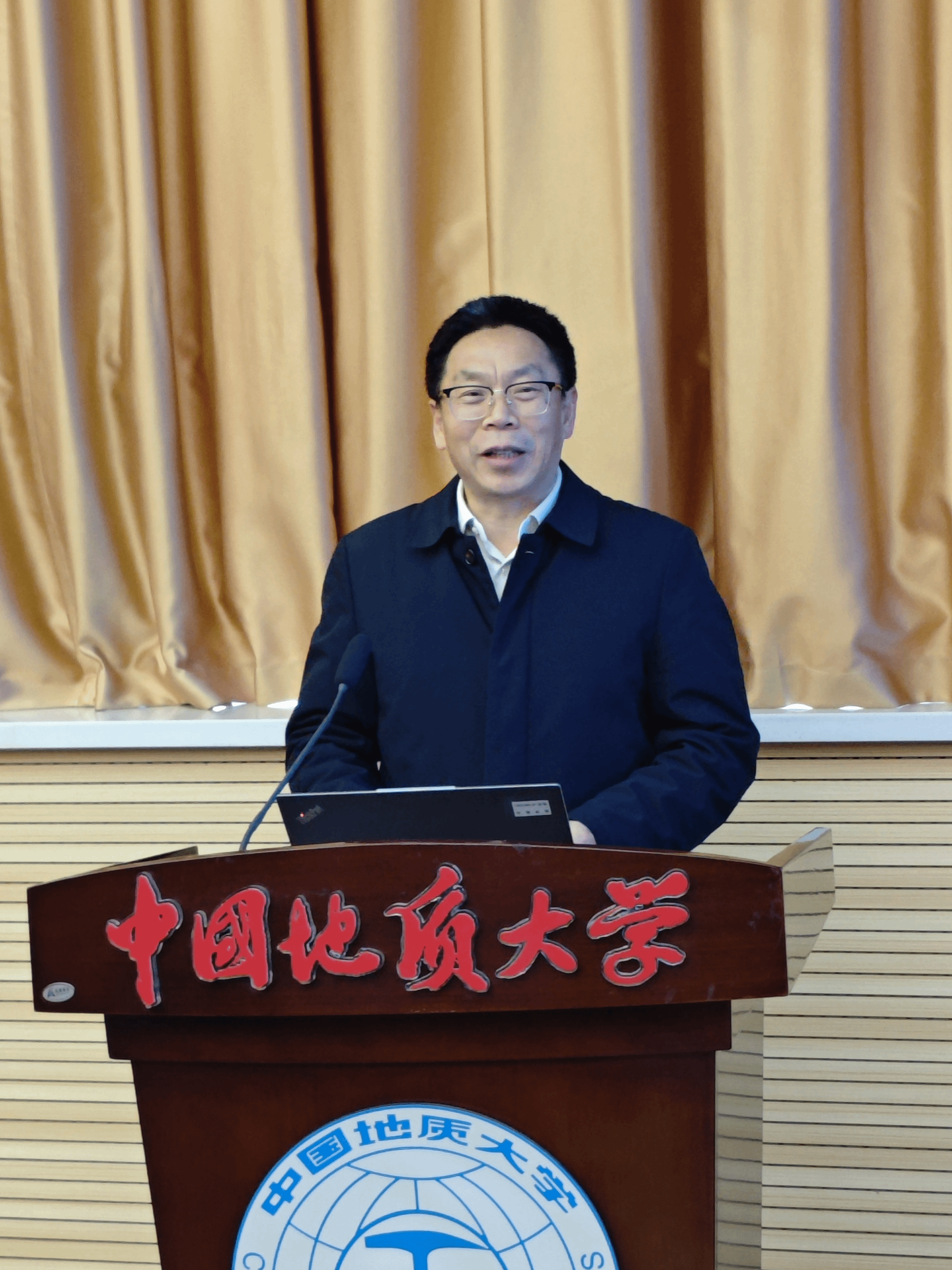 (武汉)党委副书记王甫代表学校致辞,对研修班学员们的到来表示欢迎,并简要介绍了学校的基本情况、学科特色和育人优势。他希望授课教师坚持问题导向,创新教学方法,提高授课针对性,着力解决一线难题,互学共进、教学相长。学院与各单位在培训中深入交流、增进合作,推动校企产学研用深度融合,主动服务地质灾害防控工作,共同谱写地质事业新篇章。