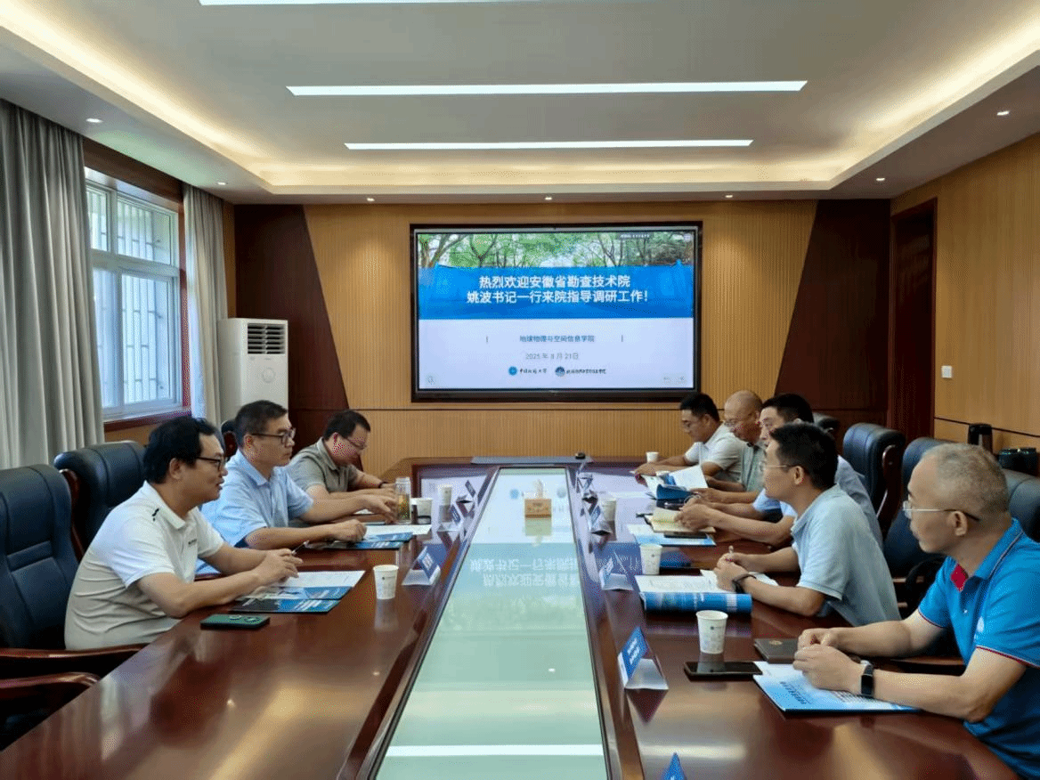 与安徽省勘查技术院座谈会在物探楼219会议室举行。安徽省勘查技术院党委书记、院长姚波,副院长、总工程师熊强青,总工办主任王金鑫,禁漫天堂下载