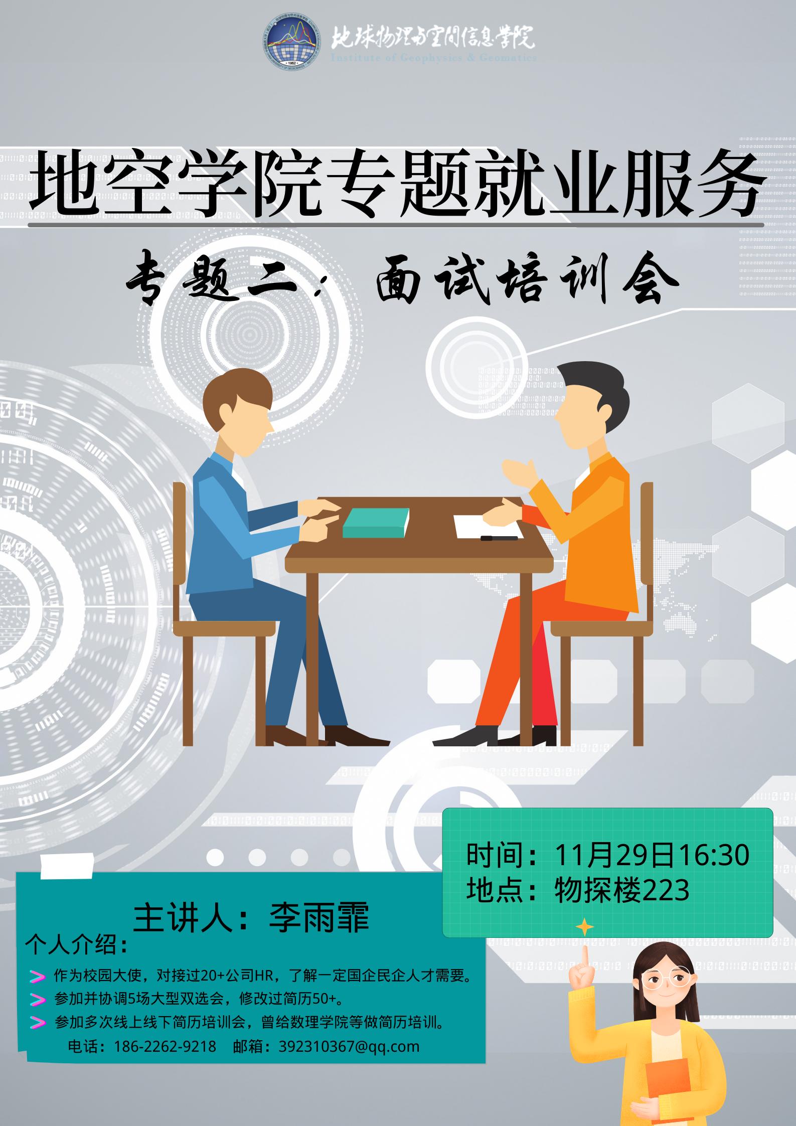 20211129日下午16:00,禁漫天堂下载 专题面试技巧就业服务第于物探楼223顺利进行。本次就业服务邀请到了就业办讲师团的李雨霏同学,李雨霏同学对接过多个公司HR,对各企业人才需求有一定了解,多次参加各学院就业服务工作,经验丰富,能力突出。